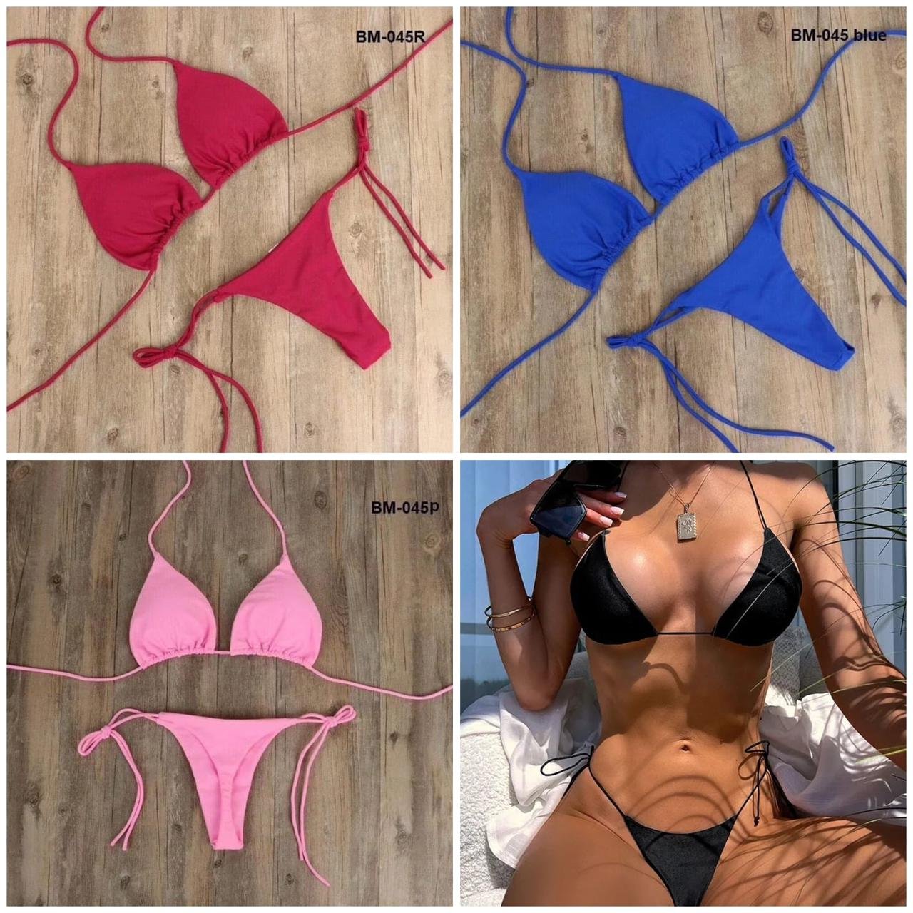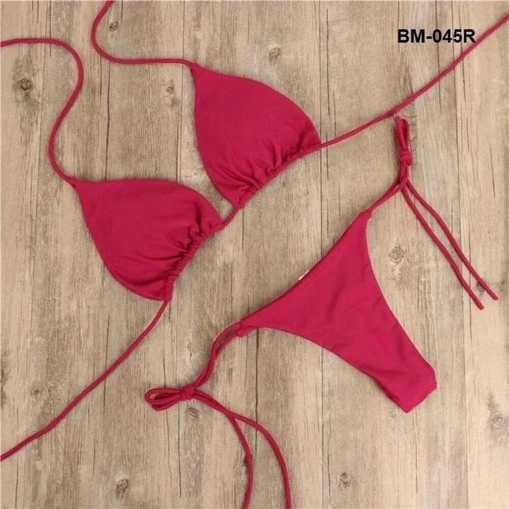 Design: এটি একটি ক্ল্যাসিক ২-পিস বিকিনি সেট যাতে রয়েছে স্লাইডিং ট্রায়াঙ্গেল টপ এবং মিনিমালিস্ট থং স্টাইল বটম।